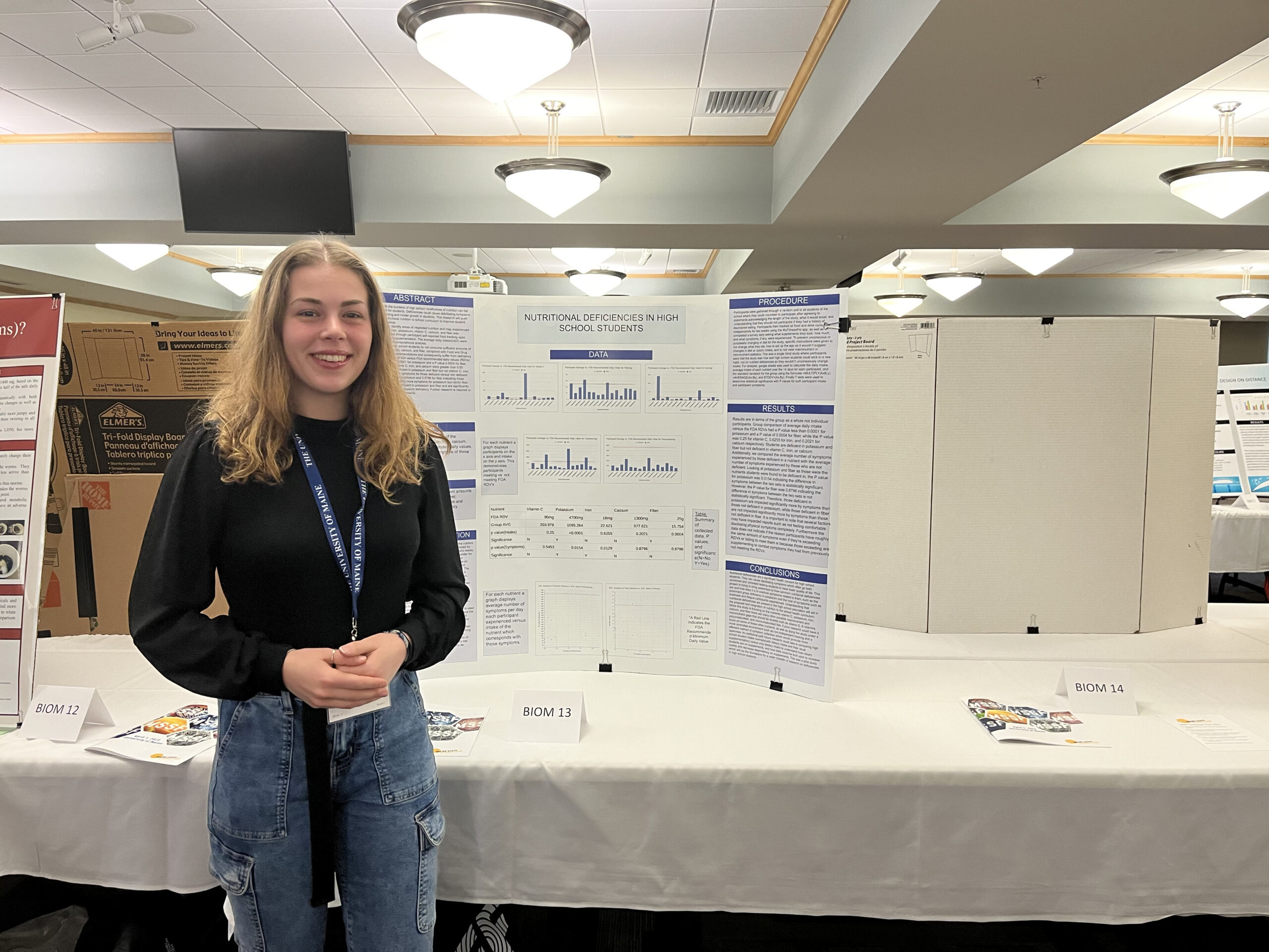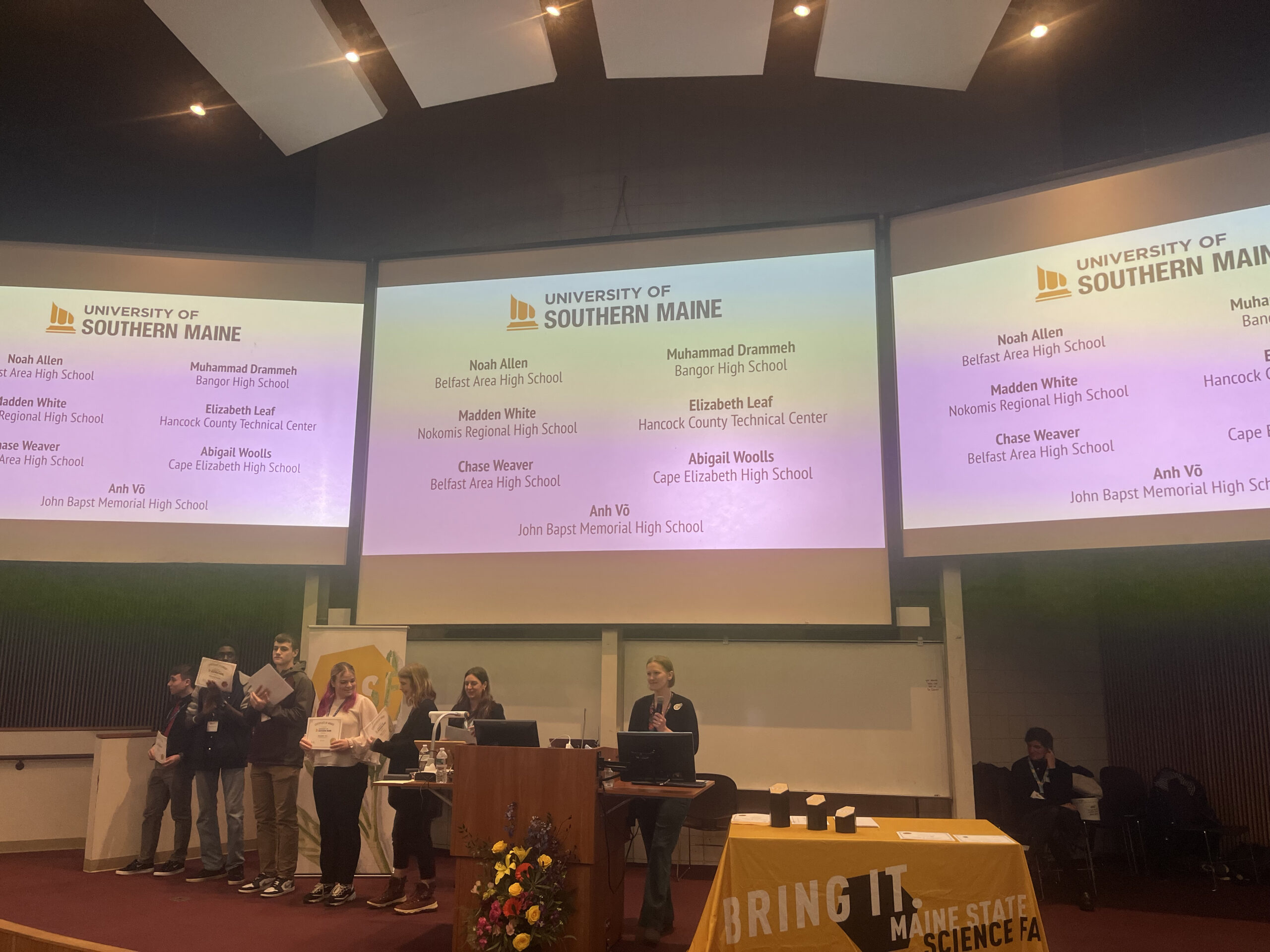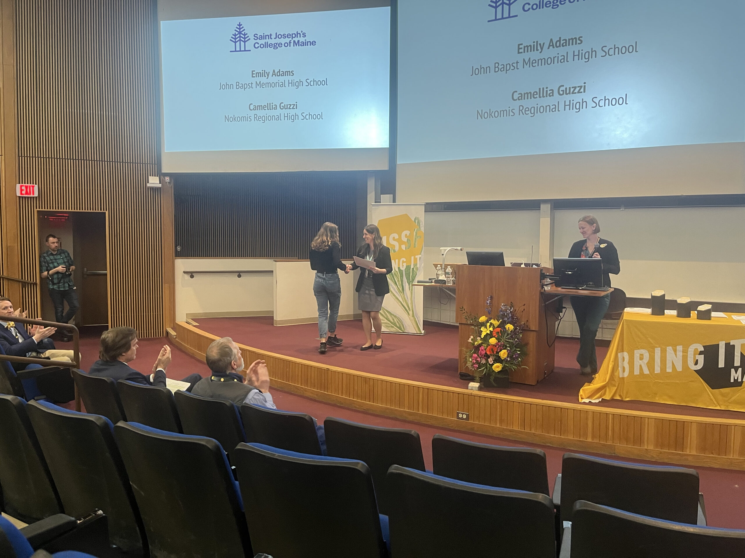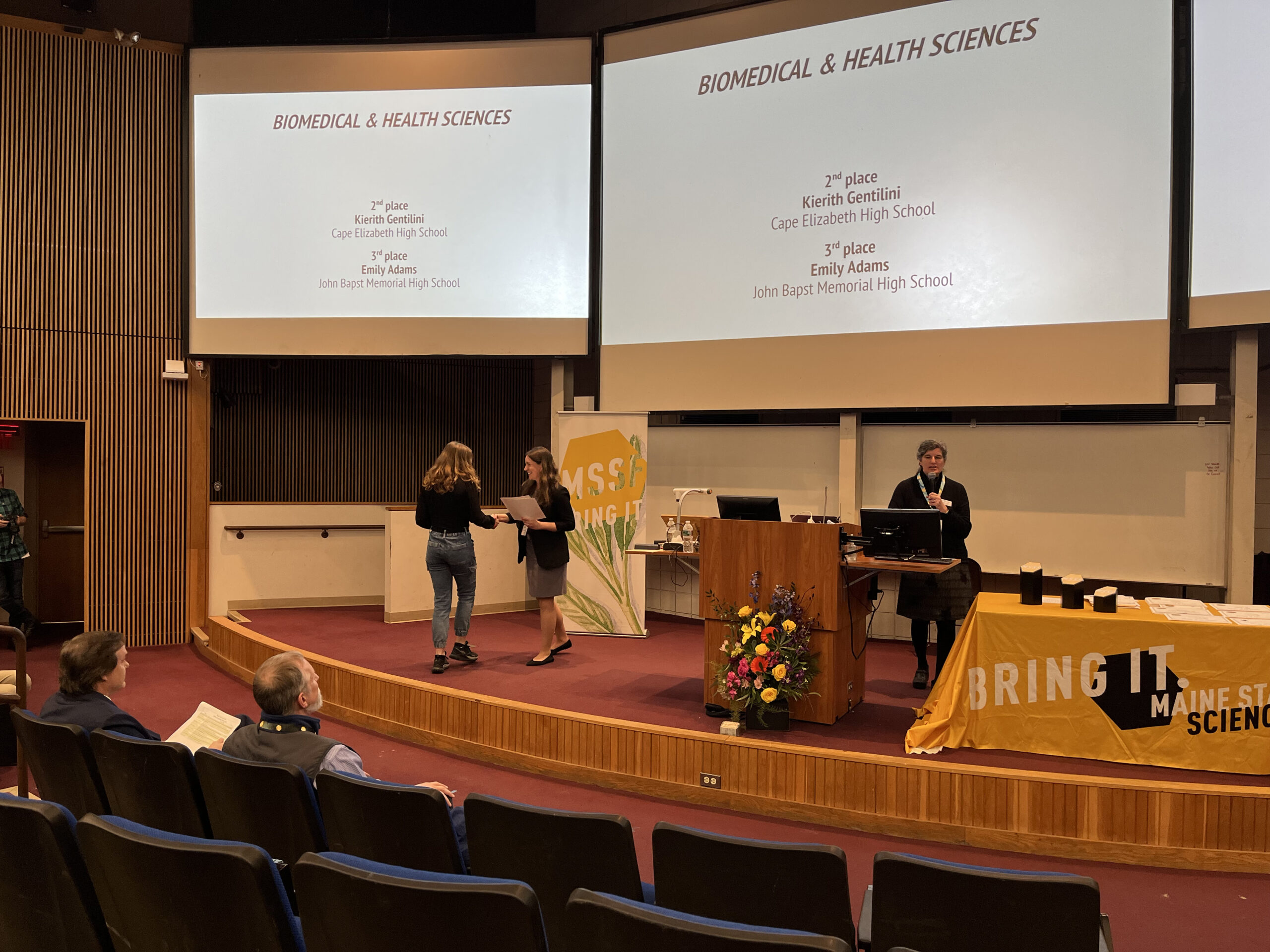 Emily Adams won a third place award in the Biomedical & Health Sciences category as well as a four year renewable $2,500 dollar scholarship to Saint Joseph’s College of Maine.