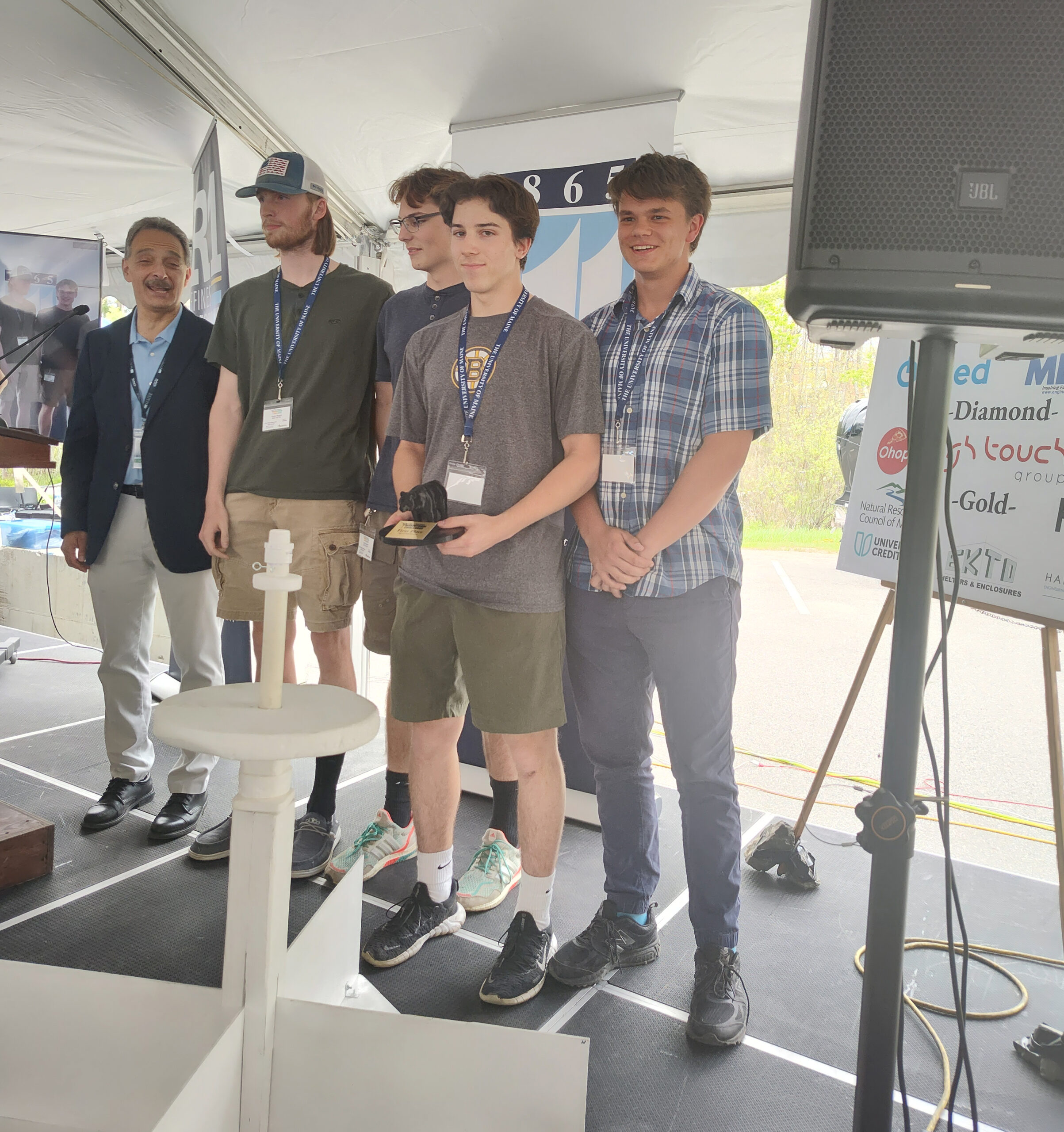 Additional congratulations go to Lucien Bilodeau, Connor Simcox, and Alex Shanos of team Red, Wet, and Blue, and Jing Russell, Julianna Clark, Hunter Smith, and Alex True of team Turbine Titans for an outstanding test and presentation at the Challenge. Julianna, Hunter, and Alex also scored second place in the Bridge-Breaking Contest held by the Transportation Infrastructure Durability Center at ASCC.