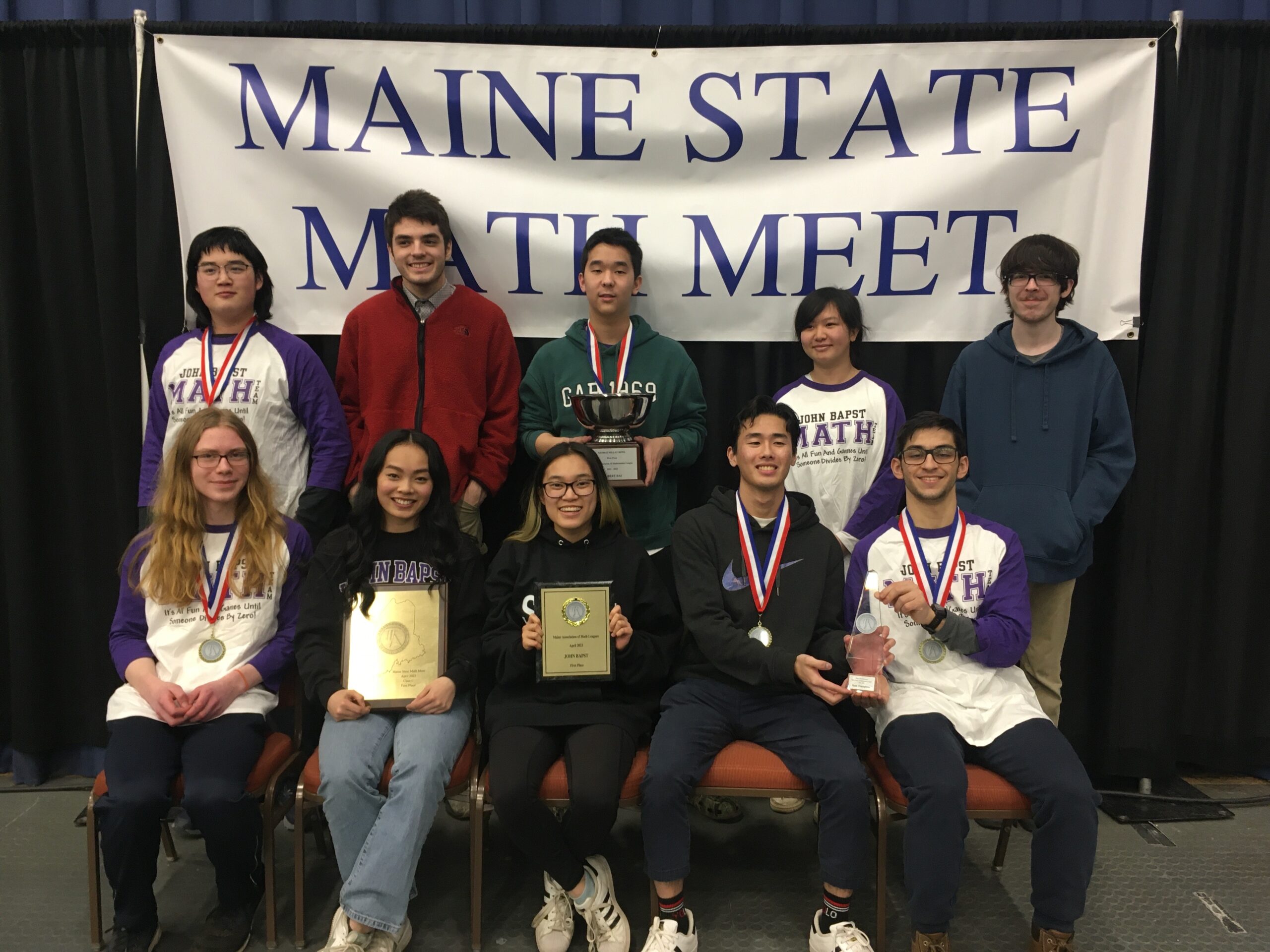 Congratulations to the new First Place State Math Champions following the April 4, 2023 meet in Augusta! Their winning score was 551. Great work, Albert Bai, Eric Lim, Ryan Xu, Emily Xu, Filippo Falqui Cao, Jing Russell, Sophie Kahn, Colin Peasley, Declan Schilling, Aidan Fenwick, and Brody Schroeher. Congratulations as well to teachers Abigail Hayward and Daniel Buck.