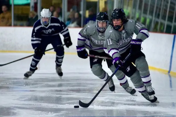 The Crusaders have seven regular season games remaining before the playoffs. Their goal is to win the school’s first hockey state championship.